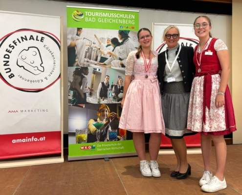 Zwei Diplomierte Käsekennerinnen der HLW Annahof Salzburg freuen…